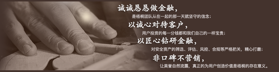 梧桐诚选精选小额分散的新金融场景,通过专业多维的风控系统, 有效控制出借风险,专业银行资金存管,为出借人提供风险分散、期限多样、信息透明的网络借贷咨询服务。