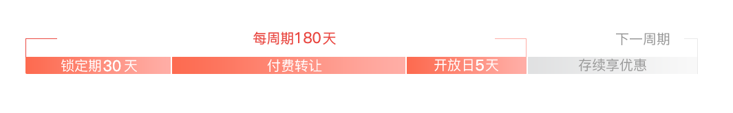 每周期最后5天为开放日,开放日免费转让 非锁定期可付费转让(1%手续费) 转让申请时间:每日05:00-21:00 |