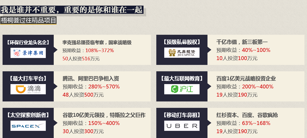 栽下梧桐树,必有凤凰来。放眼全市场,能低门槛参与世界级名企优质投资项目,仅梧桐一家;