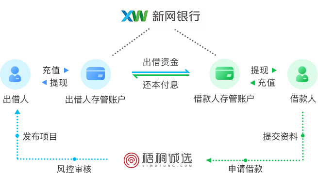 新网银行对接百余家网贷平台,金融科技实力过硬,且位列第一批中互金存管银行白名单。梧桐诚选秉承合规发展的要求,根据自身业务调整需要,将存管银行切换为业务模式规范、互联网体验良好的新网银行。